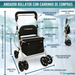 VERSATILIDADE DE UTILIZAÇÃO: Este andarilho para idosos combina a praticidade de um carrinho de compras com a funcionalidade de um apoio para caminhar, sendo uma solução versátil para manter a independência e o bem-estar diário.