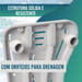 - HIGIÉNICA: Possui furos em toda a superfície que facilitam a drenagem da água para maior conforto na hora do banho, tanto para o Cuidador como para o Utilizador, evitando a estagnação da água.